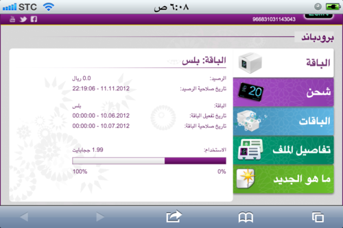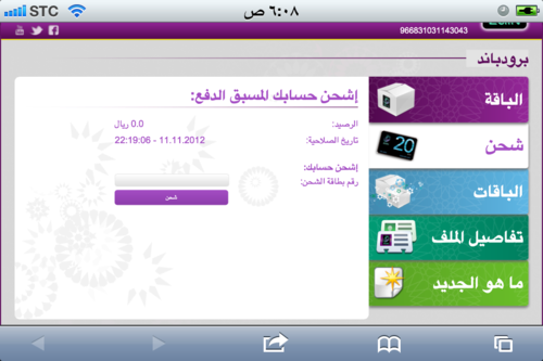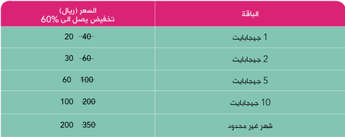 - صفحة خاصة لإستعراض جميع الباقات وبضغطة زر تقوم بإختيار الباقة التي تريد تفعيلها (دون الحاجة لإرسال رسالة قصيرة تحمل رمز أو وضع