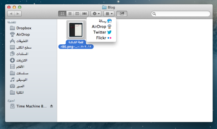 أصبح الآن زر المشاركة في جميع تطبيقات الماك الإفتراضية تقريبًا. فالآن بإمكانك بضغطة على أي صورة أو ملف على سطح المكتب أو في أي مكان في النظام أن تشاركة في تويتر أو فيس بوك أو فليكر أو حتى إرفاقة ببريد إلكتروني تود إرسالة عبر تطبيق البريد الذي تحدده كإفتراضي —كسبارو على سبيل المثال. فالتحديث لا يلزمك على إستخدام تطبيق Mail.app الإفتراضي مع الماك والتي أجدها خطوة غير متوقعة—. بالنسبة لرفع الصور على تويتر لن تتمكن من تحديد أي خدمة رفع صور تفضلها مثل: Twitpic, yFrog وغيره. فأنت ملزم على مشاركتها على خدمة أو مركز تويتر الرسمي لرفع الصور twitter.pic.com وهذا الشيء يبعدني عن إستخدام الخاصية لرفع الصور على تويتر؛ لأني مازلت أُفضل Twitpic فهو أفضل في أرشفة الصور والرجوع لها لاحقًا بشكل سليم ويسير. كما أنه “بيني وبين تويت بك Twitpic عيش وملح و قصة حب ووفاء من ذو بدايتي تويتر عام 2008 ههه”. فليكر وفيس بوك بالطبع سوف أستخدم الخاصية لذلك؛ لأنها على مركز رفع صور واحد لا يوجد غيره ولا فارق في هذه القضية. كذلك مشاركة المقالات التي تقرأها على متصفح سفاري 6 الجديد الذي يزتي مع التحديث —سوف أتحدث عنه في فقرة منفصلة— بزر المشاركة هذا أصبحت عملية سهلة وبسيطة. فتظهر لك نافذة جميلة ومميزة لتغريدة جديدة فيها الرابط وكل ما عليق هو الضغط على Tweet وكتابة تعليقك.