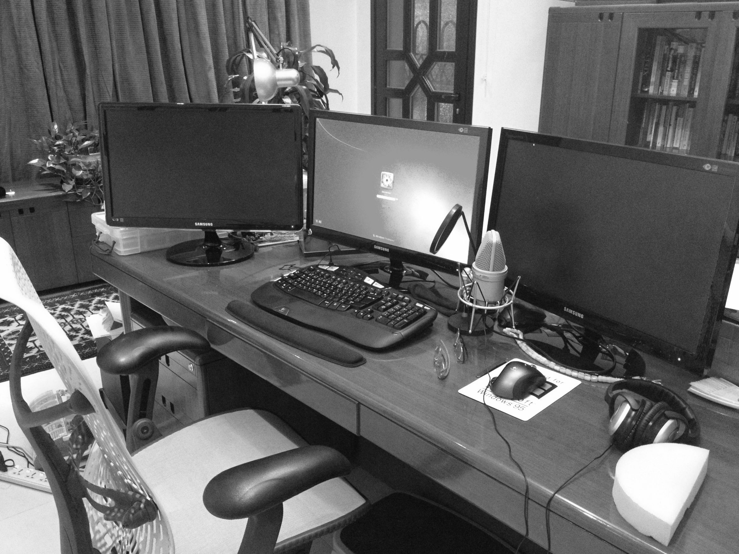 هل لنا بنظرة على مكتبك أو مساحة عملك في تسجيل حلقات السايوير بودكاست؟ متأكد بأن القراء متحمسين لرؤية مكان الإنتاج!